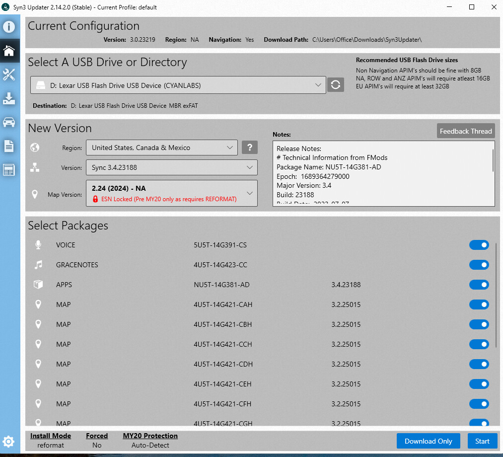 ; CyanLabs Syn3Updater 2.14.2.0 Stable - reformat Mode - Sync 3.4.23188 NA
