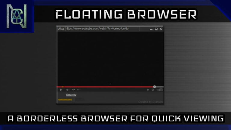 Floating Browser is a floating web browser which is able to become transparent and automatically makes youtube videos fullsize.