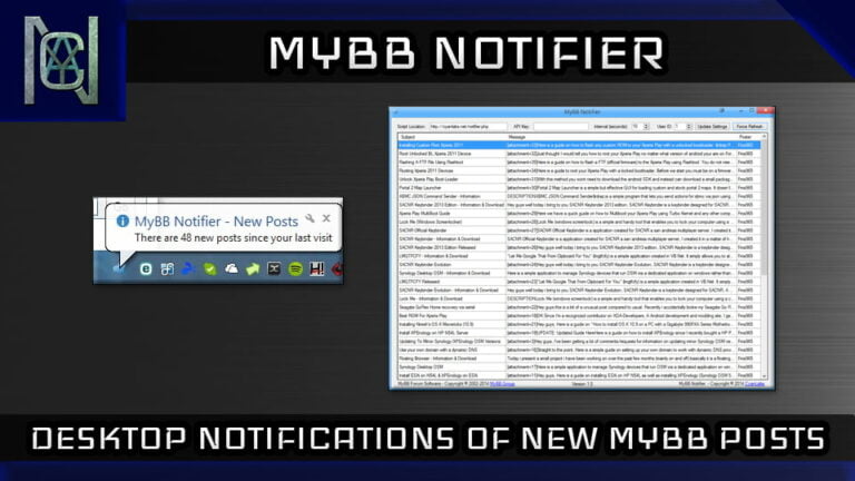MyBB notifier is a server and client that when used together allows the client to poll the site for new posts and notify the user
