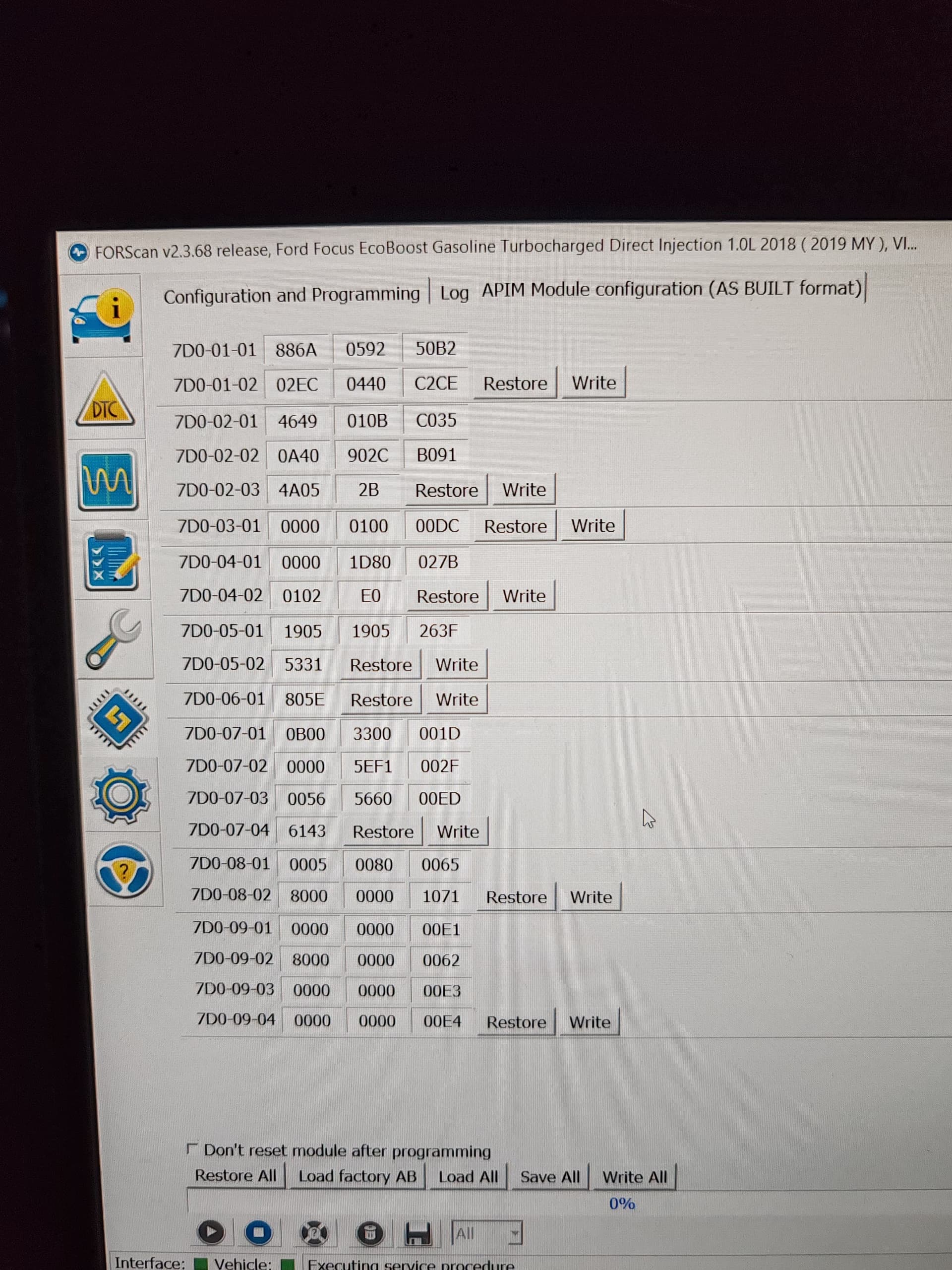 Nothing have been changed in the car with Forscan. I have the OBDII cable to activate deactivate some functions, but the car have everything, nothing need to be activated. I’m using it just to diagnose in case.