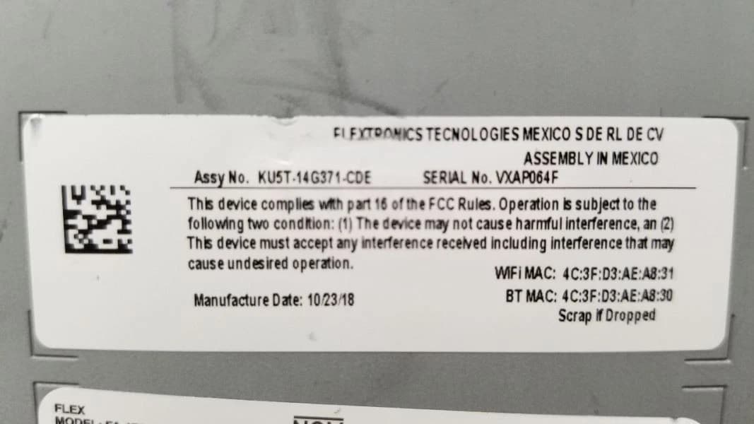 Note: You are looking for a 14G371 number, this is the actual APIM. The 370 number is an assembly number for an installation in a vehicle. Manufacturer date should be 2018 or 2019.