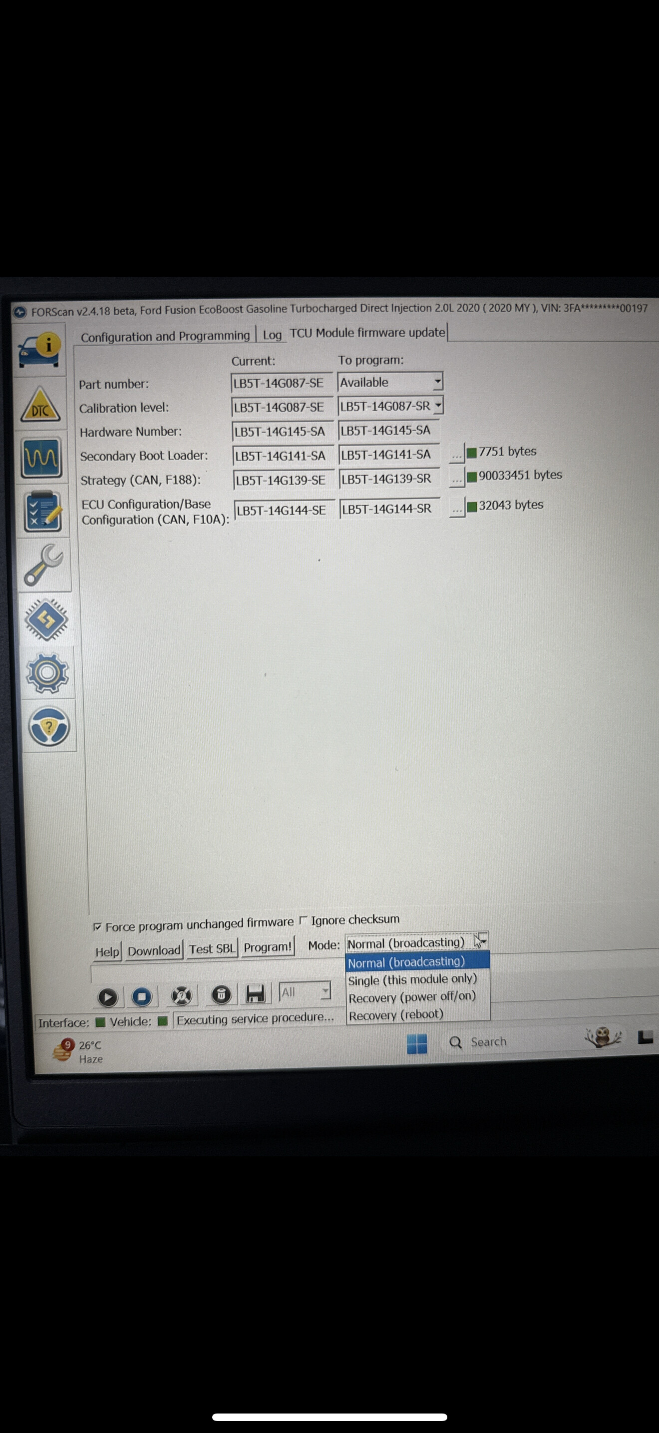 I’ve tried TCU module resets and As-Built edits. FORScan does not offer the “Firmware Update” option, so I need the VBF files to attempt a manual flash.