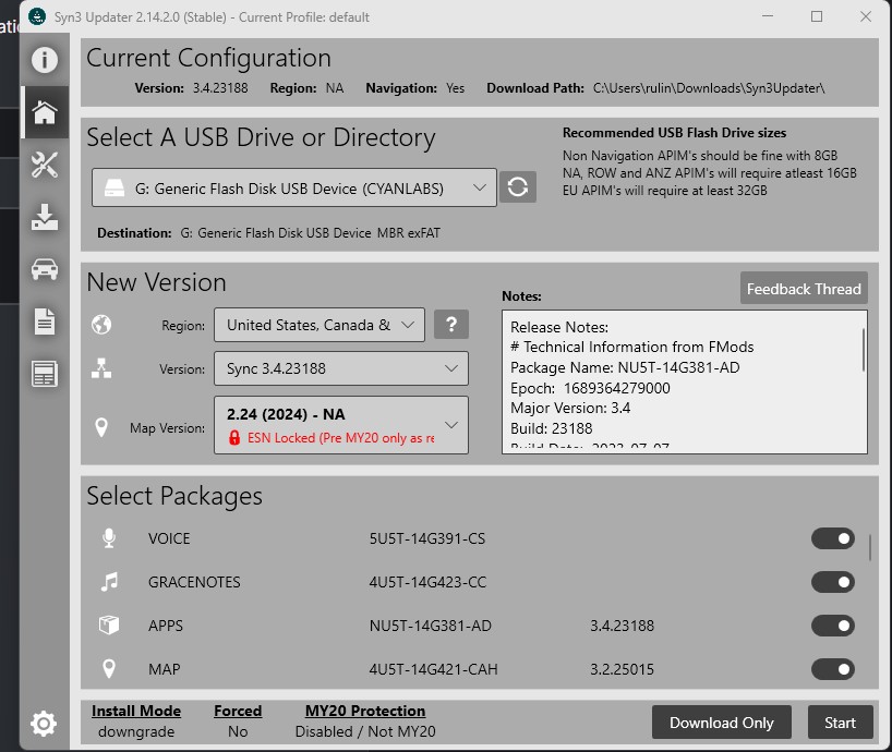 Updater says it will downgrade, and Map version is ESN locked (Pre MY20 only as requires REFORMAT)