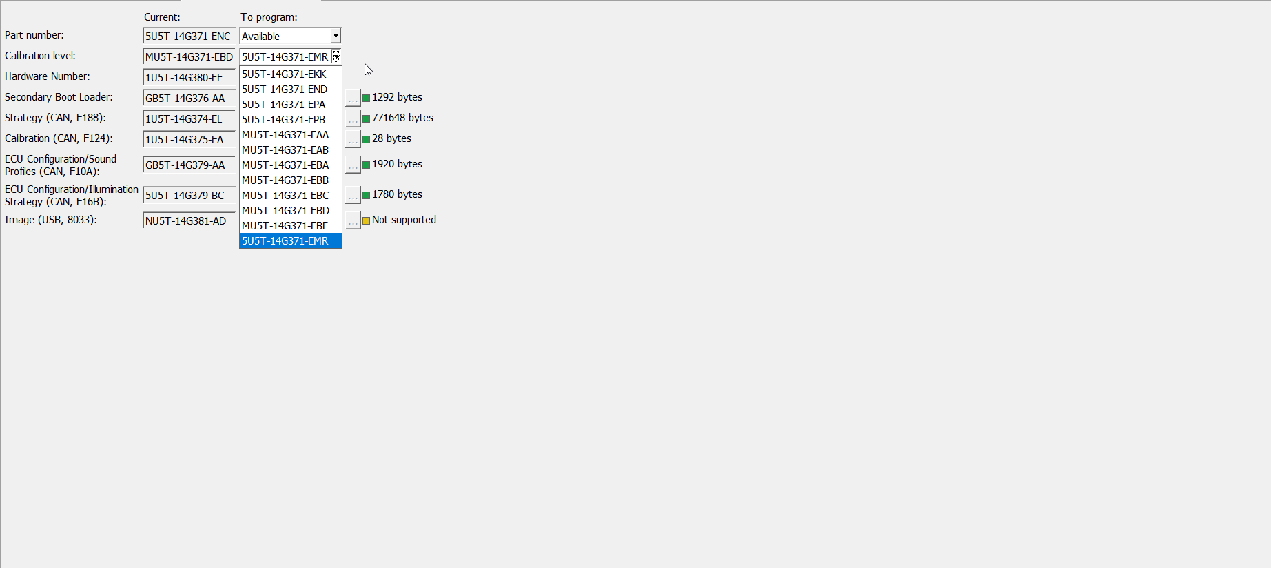 Given that the part number starts with 5UST and the calibration level starts with MU5T which file in the drop down list would be suitable for my car. I feel like the obvious choice is MU5T-14G371-EBE but when I choose that file, forscan alerts me that the file isn’t compatible with my hardware. My car is a 2021 Everest in Australia.
